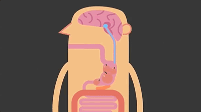 △当胆囊收缩素到达下丘脑时,会导致吃东西时得到的满足感减少,从而呈现饱足感,让你停止进食