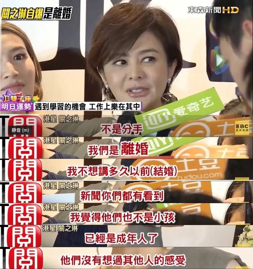 关之琳才痛哭自曝两人是离婚,不是分手,还公然指责刘嘉玲不顾别人的感受。
