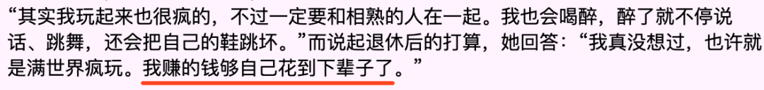 她自己也说:“赚的钱够自己花到下辈子了。”
