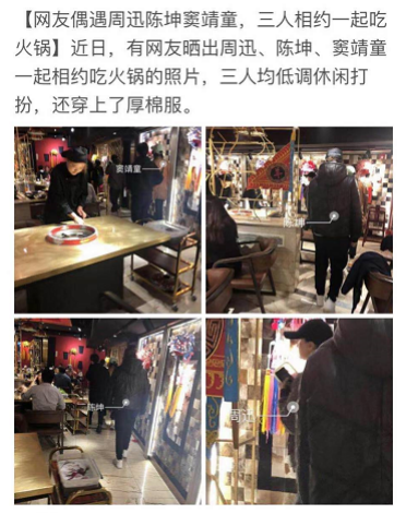 比如一起吃饭,被网友在火锅店偶遇了。