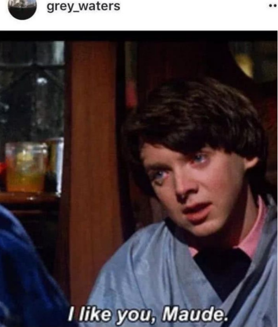 后来还在ins上发了一张“忘年恋”的电影截图(该电影讲述了一个少男和老妇的恋爱故事)。