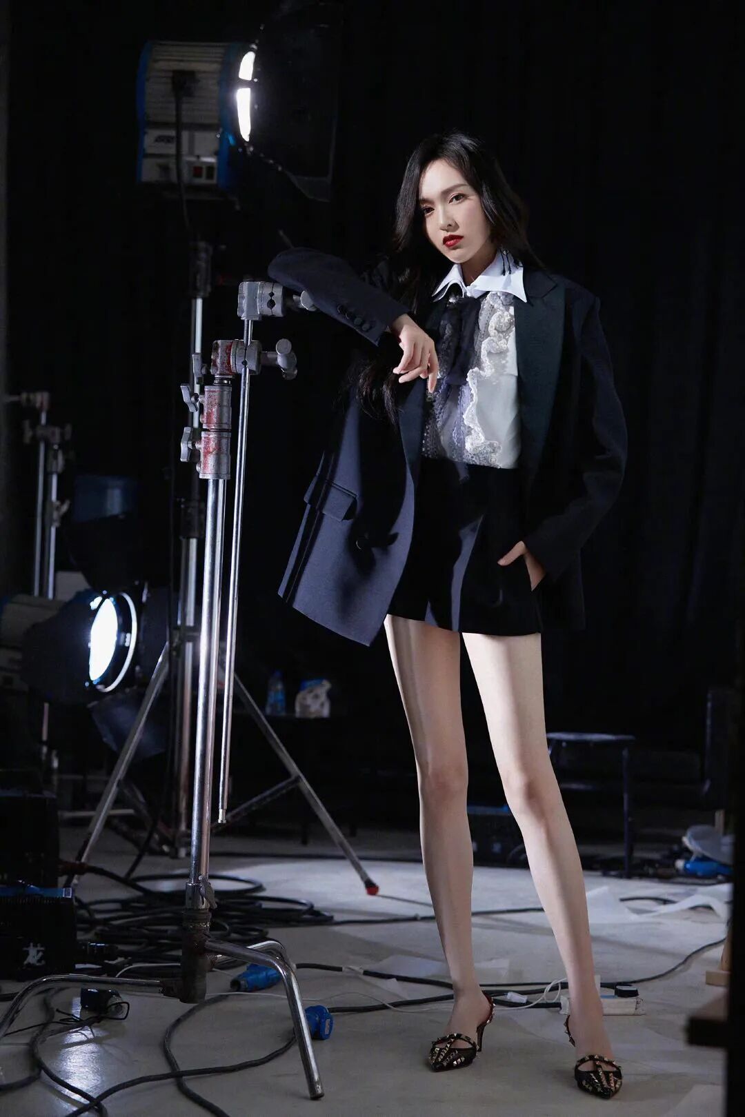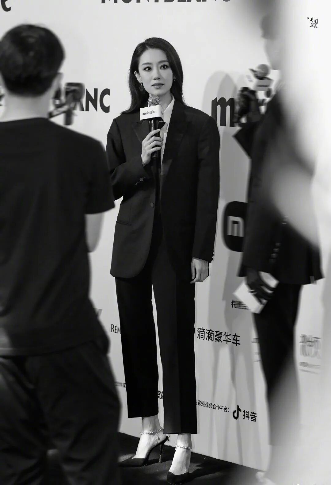 唐嫣是整场活动里为数不多的露腿明星,她身着Valentino 2021秋冬黑西装,搭配铆钉高跟鞋,干练利落。
