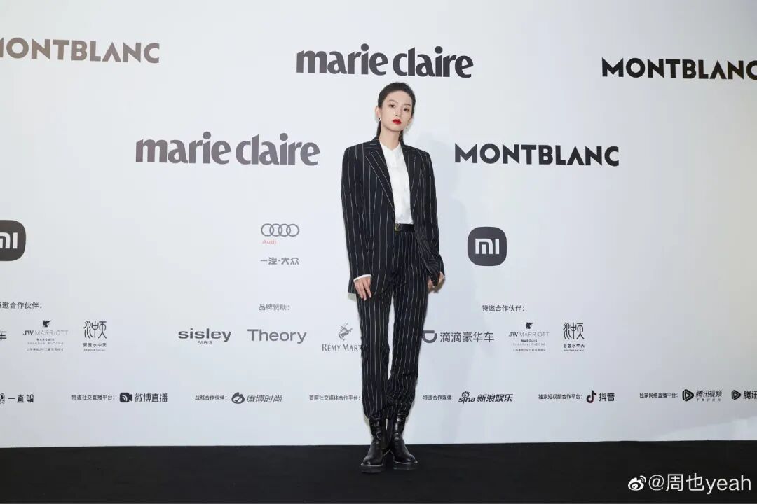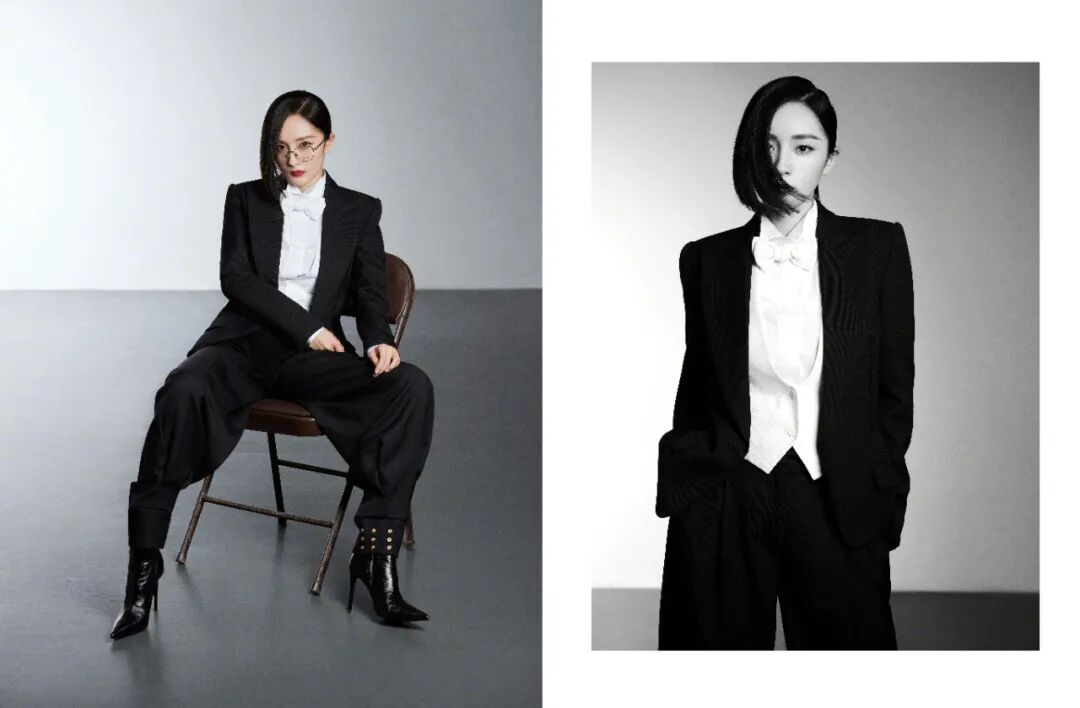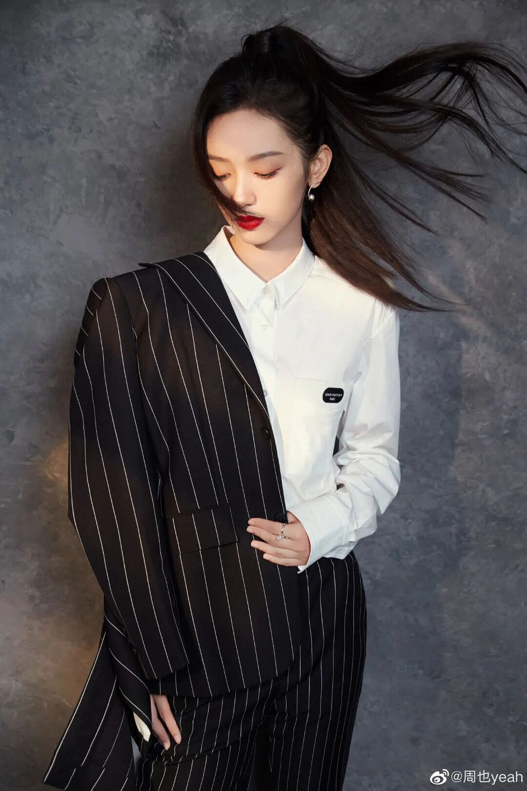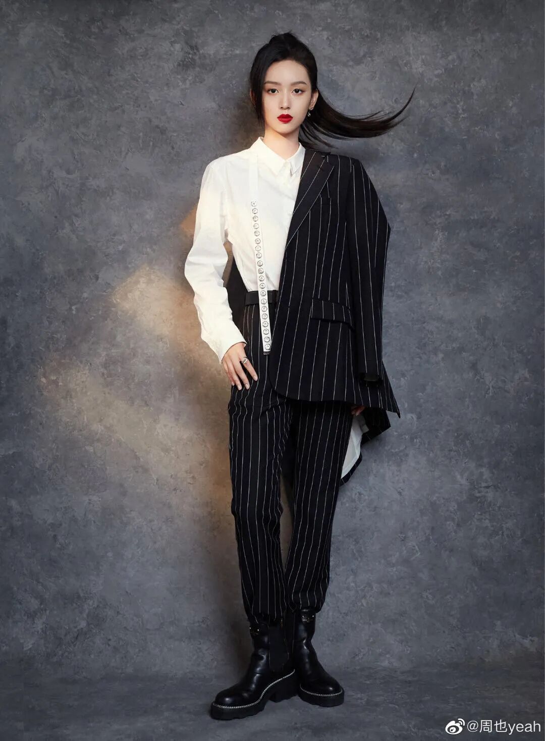 周也的黑白西装LOOK来自LV,造型简约利落,和她一贯的富家大小姐风格还蛮不一样的。