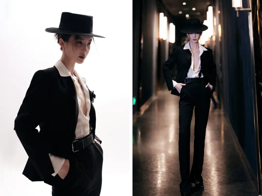 刘诗诗的变化也很大,她穿着一身Chanel西装,用黑色腰封和礼帽增加气场,举止投足间尽显精英气质,人送外号“刘英俊”。