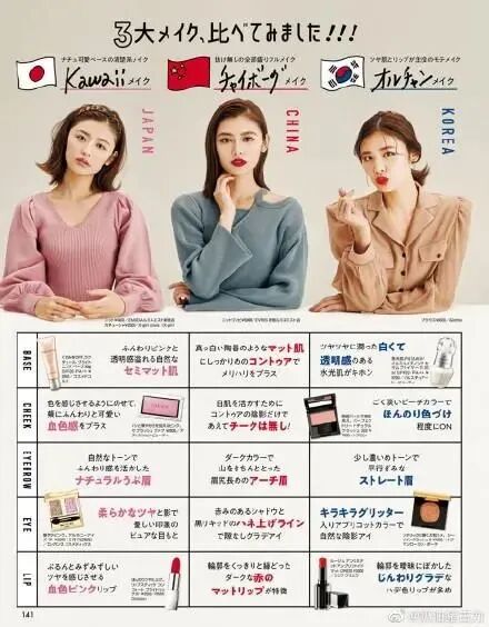 早在去年2月,日杂《JJ》就已经对比过中日韩三国妆容的不同。