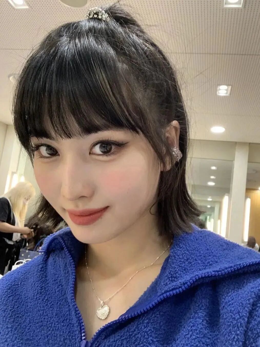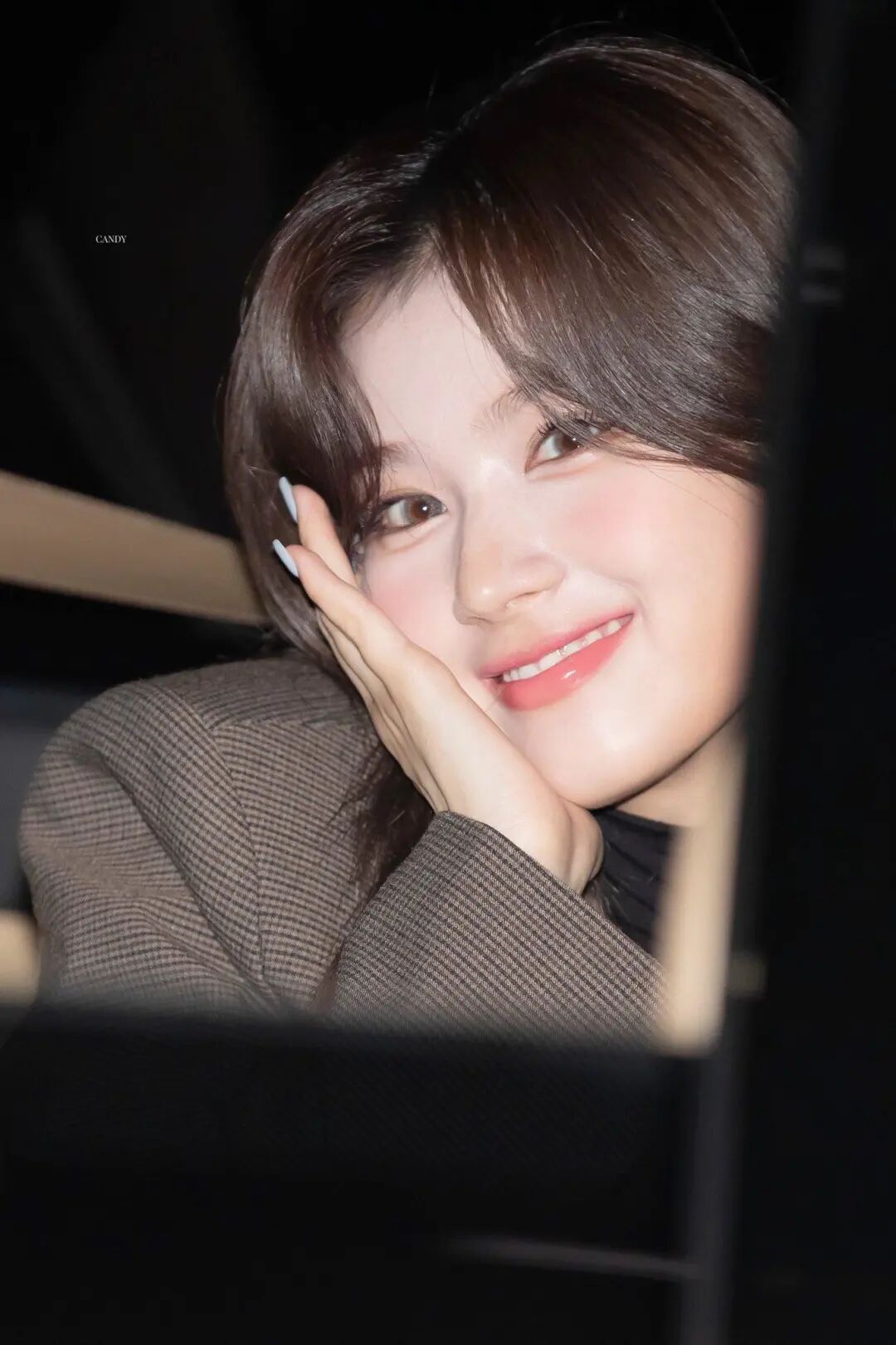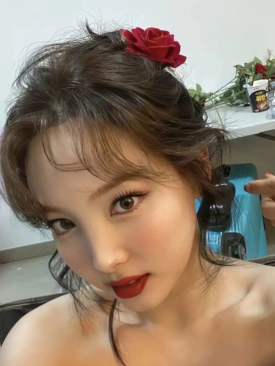 首先,底妆要厚重、光滑、白皙,最好连怼脸生图都看不见毛孔那种,请看sana的正面示范。