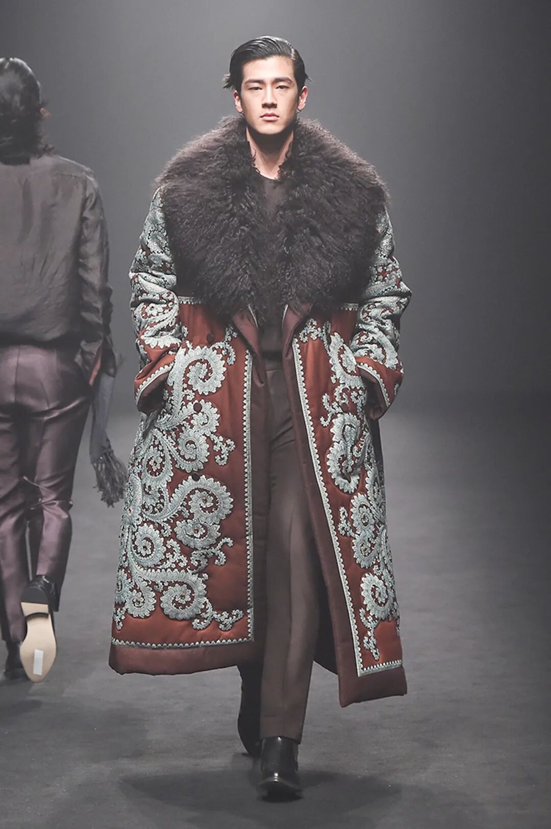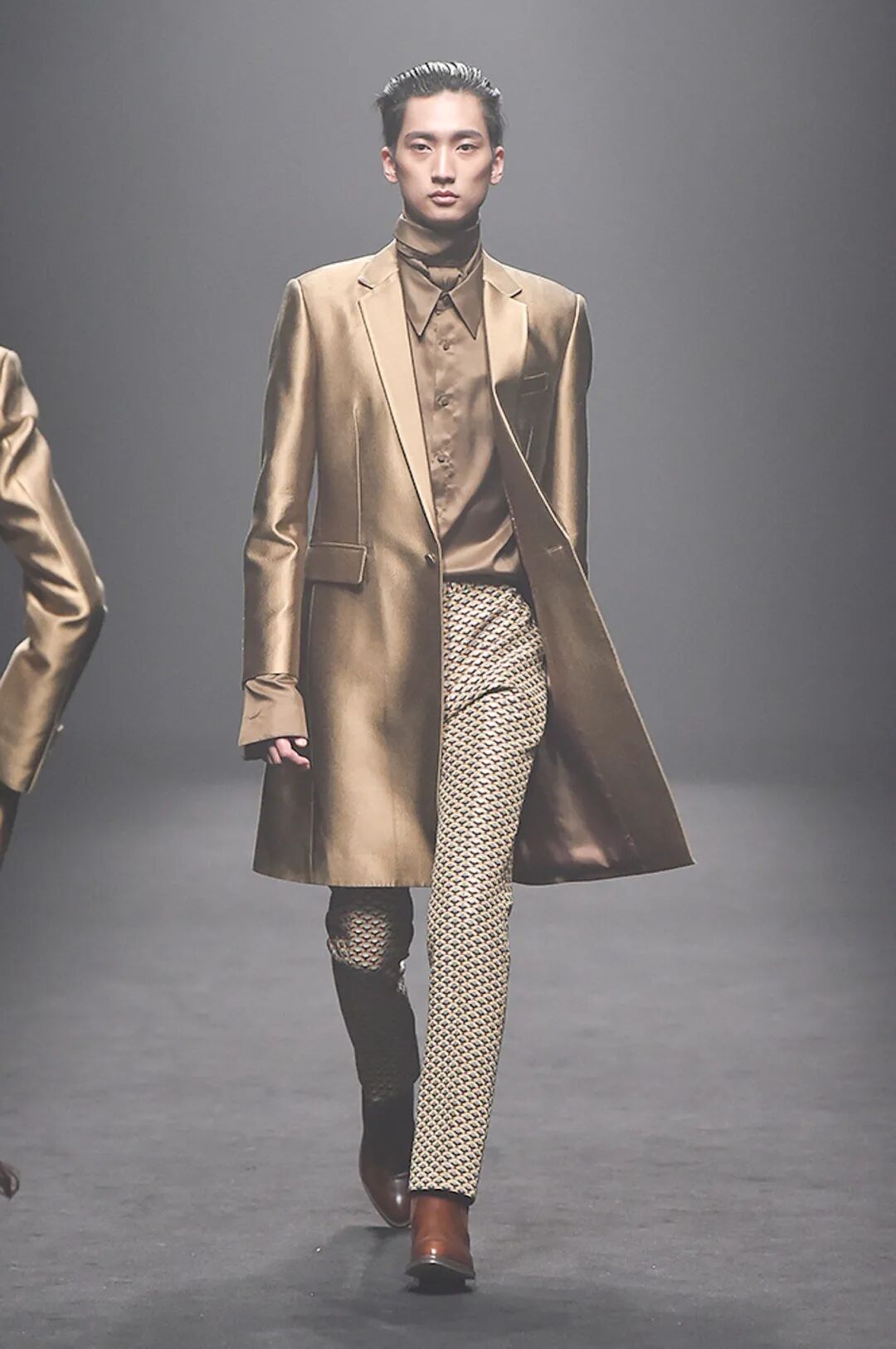 缎面、印花刺绣、还有光感面料经常出现在Kim Seo Ryong的系列中。
