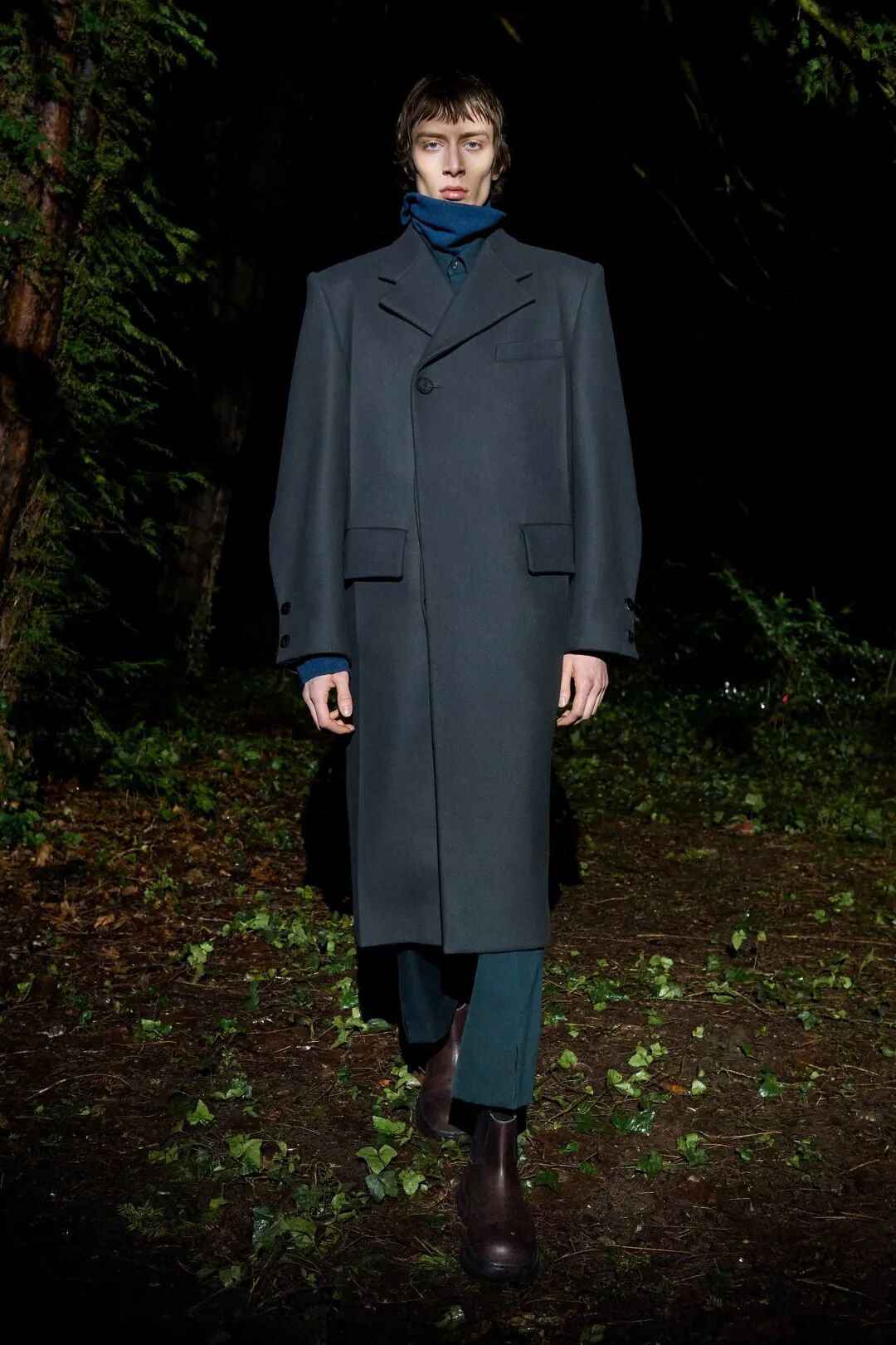 不过也有一些新花样,比如给大衣和夹克加上独特的方肩,故意放大细节袖子、口袋的比例。