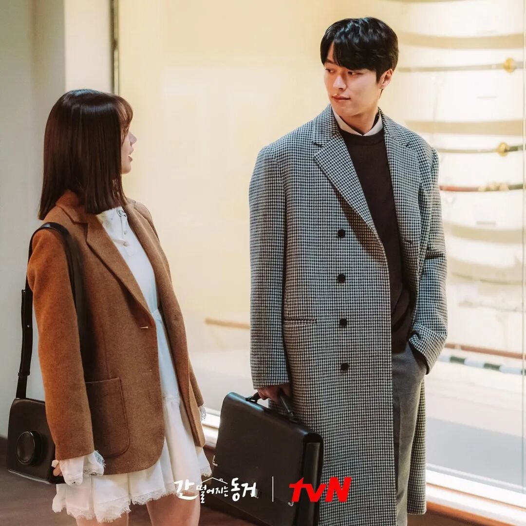 隔壁正在热播的电视剧《心惊肉跳的同居》中饰演男主的张基龙也不乏是这种类型的穿搭。