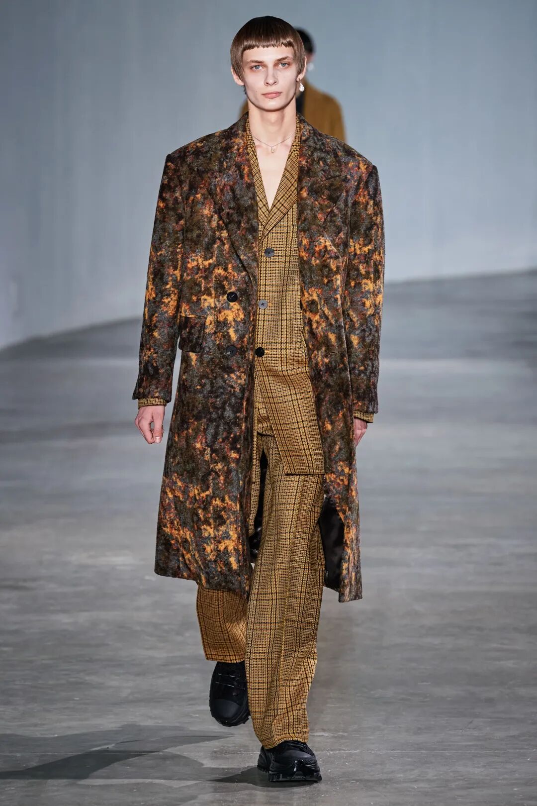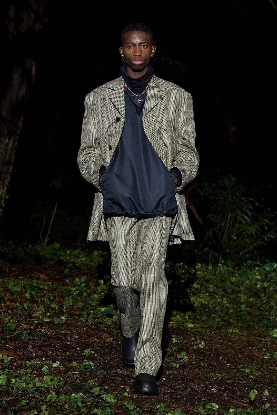 2021秋冬男装系列,于英美的依旧表达了自己对可持续发展的认同,坚持男女“共用一个衣柜”。