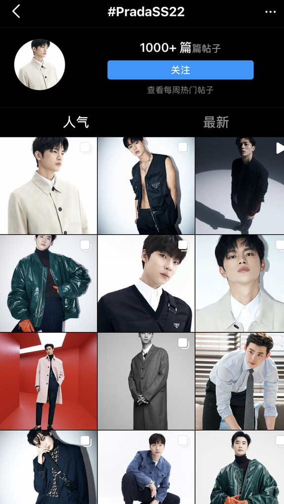 还有没上热搜,但成为了PradaSS22 ins人气第一的徐仁国。