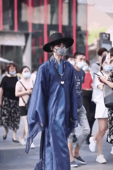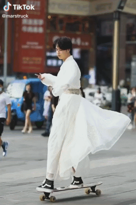 他们在大街上穿着汉服滑板、逛街,令人耳目一新。