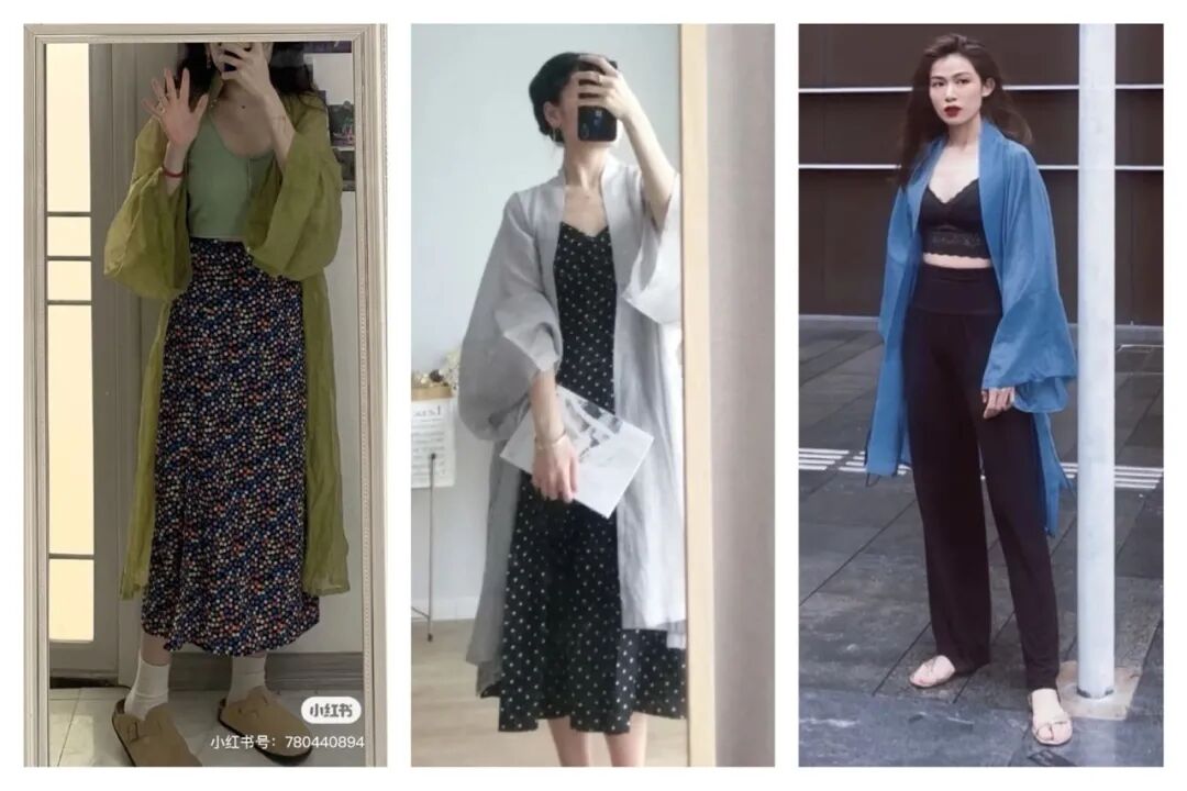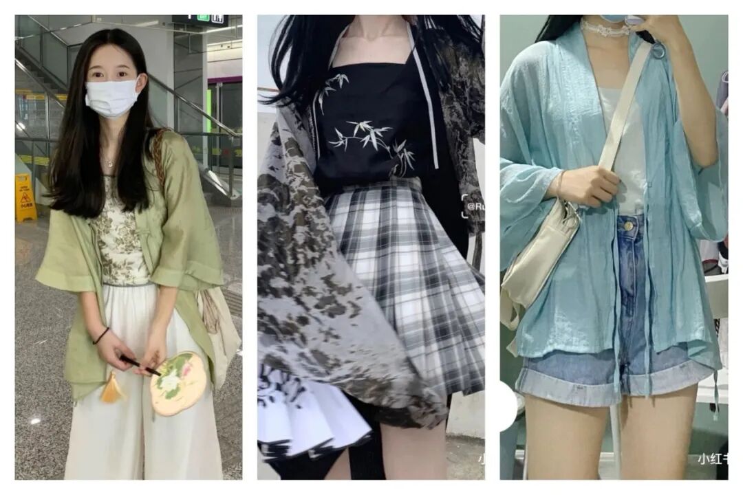 保留你平时自己的穿搭,然后把防晒/防凉的衬衫换成汉服的对襟长衫即可,是不是很容易copy呢。