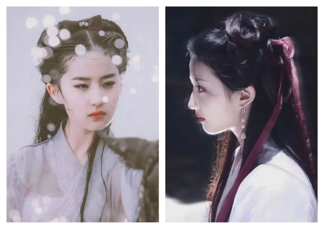 像刘亦菲这种古典型长相(扇形眼皮、悬胆鼻),跟汉服的适配度可太高了。