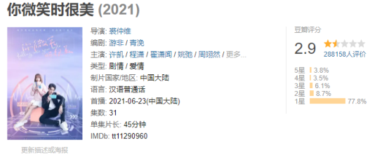电竞+爱情也是一样的,比如最近被骂得很惨的这一部——《你微笑时很美》。