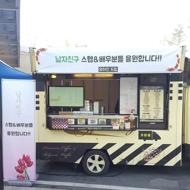 还有拍摄《男朋友》时,刘亚仁又送了一辆自助餐车。
