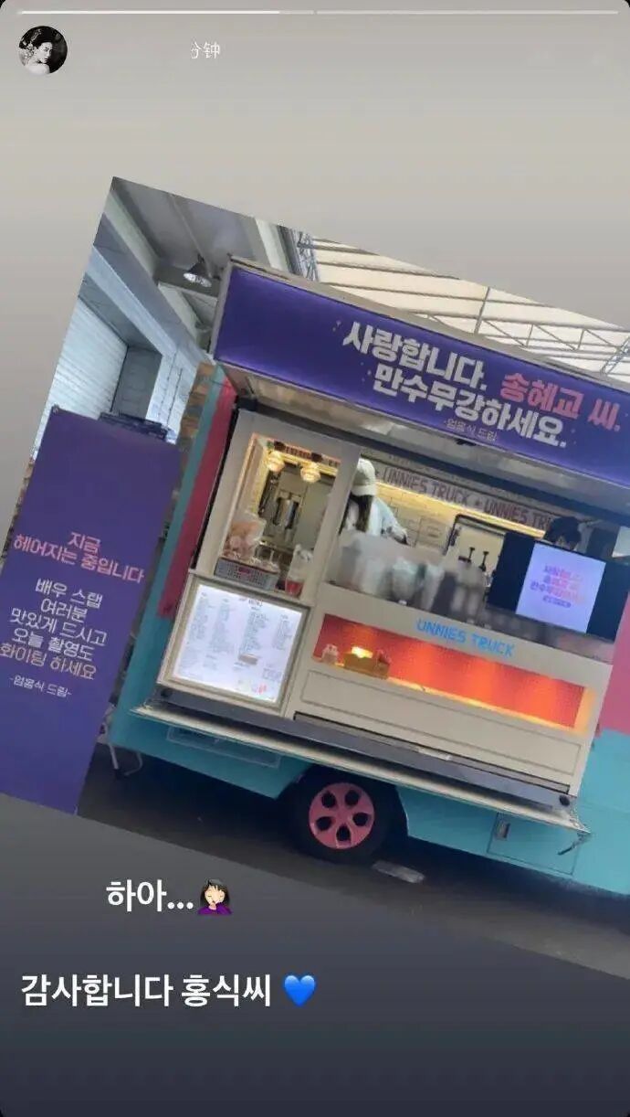比如宋慧乔拍摄《现在分手中》的时候,刘亚仁也送过同样的咖啡车。