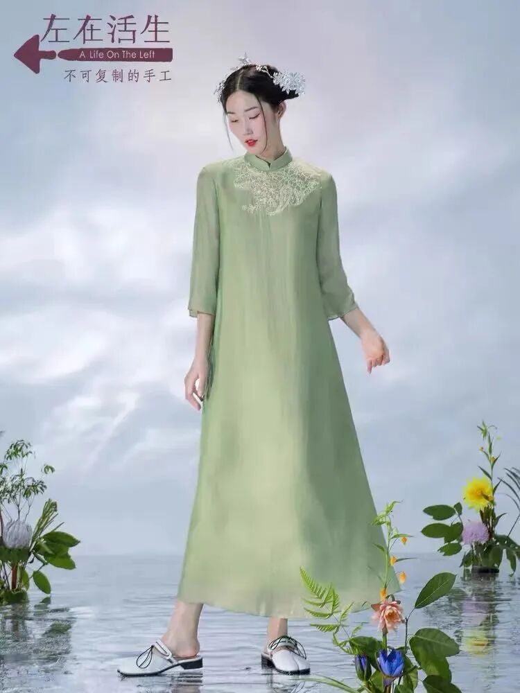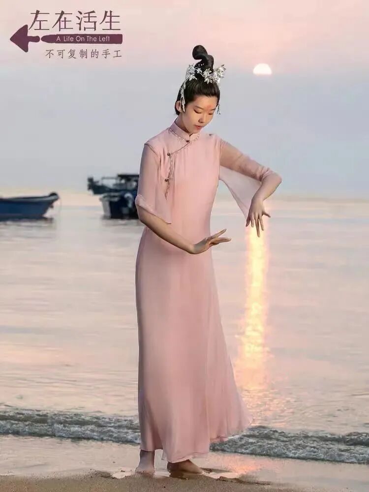 长款旗袍自带古典属性,知性的盘发和稳重的表情才是正确的打开方式。想要在更多不那么正式的场合穿旗袍,给大家推荐下面这款。
