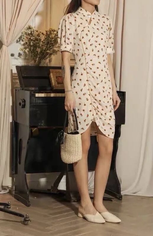 夏天妹子人手一件的碎花裙吗?穿上旗袍款,再也不用怕撞衫啦。