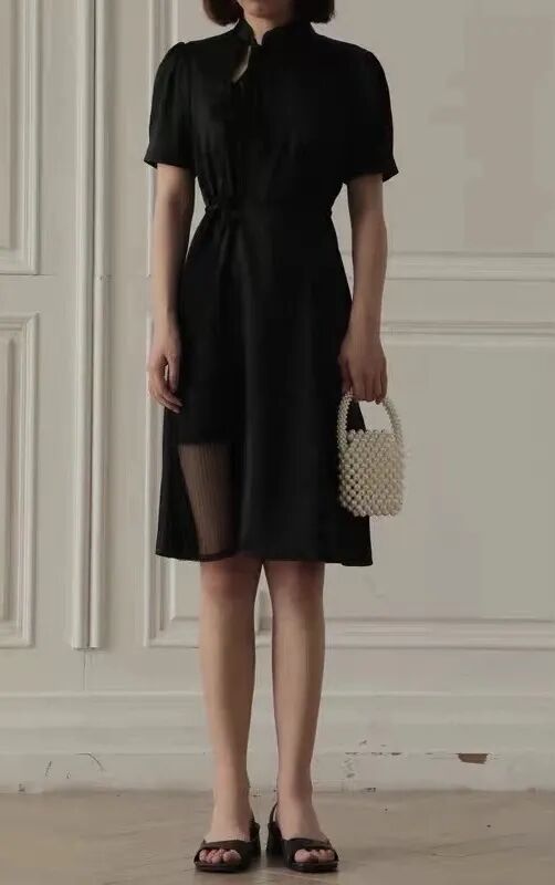 这家的旗袍不那么传统,喜欢在旗袍的基础设计上加入时尚元素,还蛮适合日常穿的。这件保留了旗袍的领子,下半身是普通的连衣裙,同时还加入镂空设计,上班逛街都不违和。