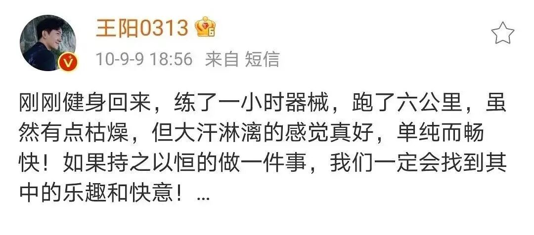 就算现在火了,日程繁忙,他也依旧坚持每天踩80分钟的椭圆机,练40分钟的器械。