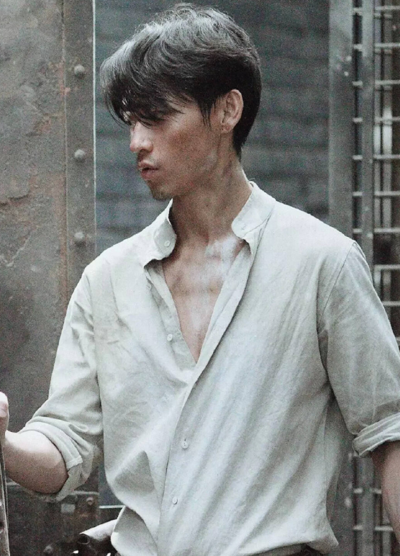 没想到最后成为了一大福利优势,电影《八佰》中他有一张图就流传甚广,破军装和衬衣都掩盖不了身材骨相。