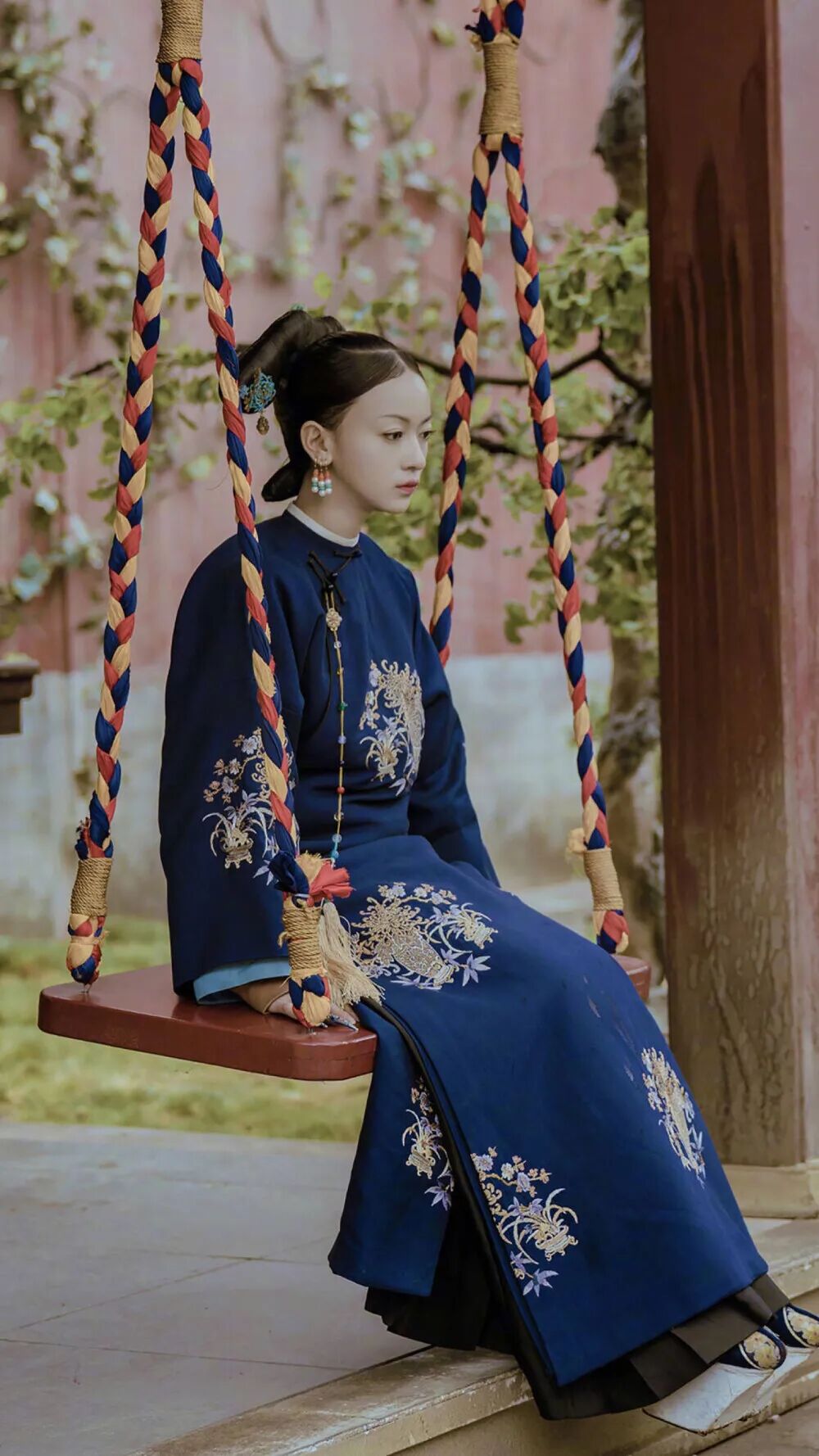 素净的常服,和男装很像,比较明显的特征是它窄小的马蹄袖,旗人风格很重,一般搭配领衣上身。