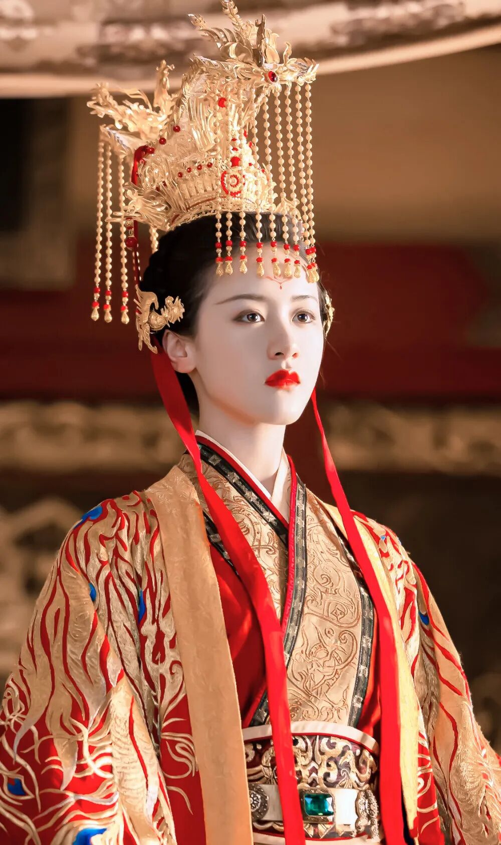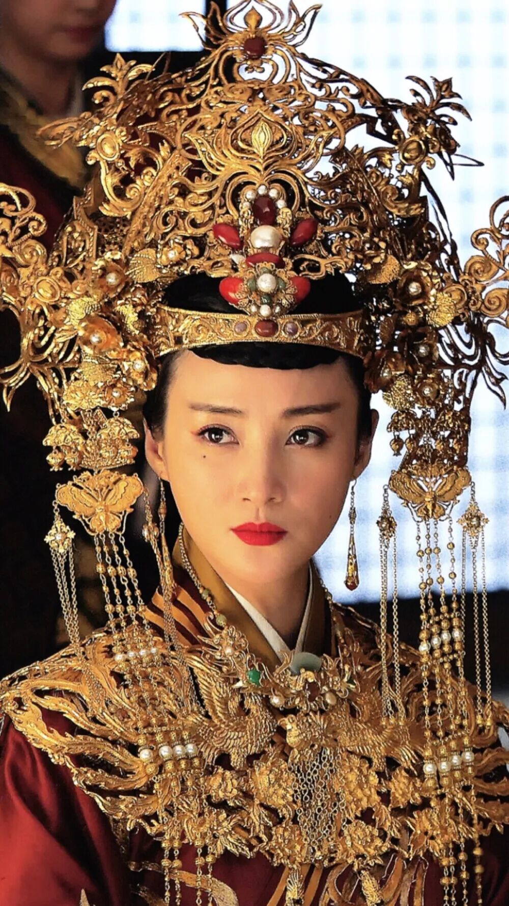 至于董洁饰演的皇后,则更多的通过华丽的材质来体现地位的尊贵。