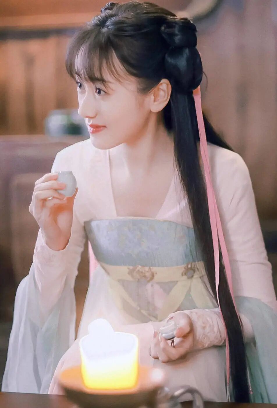 少女时期的双发髻+空气刘海+发带,梳最萌的头,打最狠的架。(记住璇玑的发带,待会儿要考。