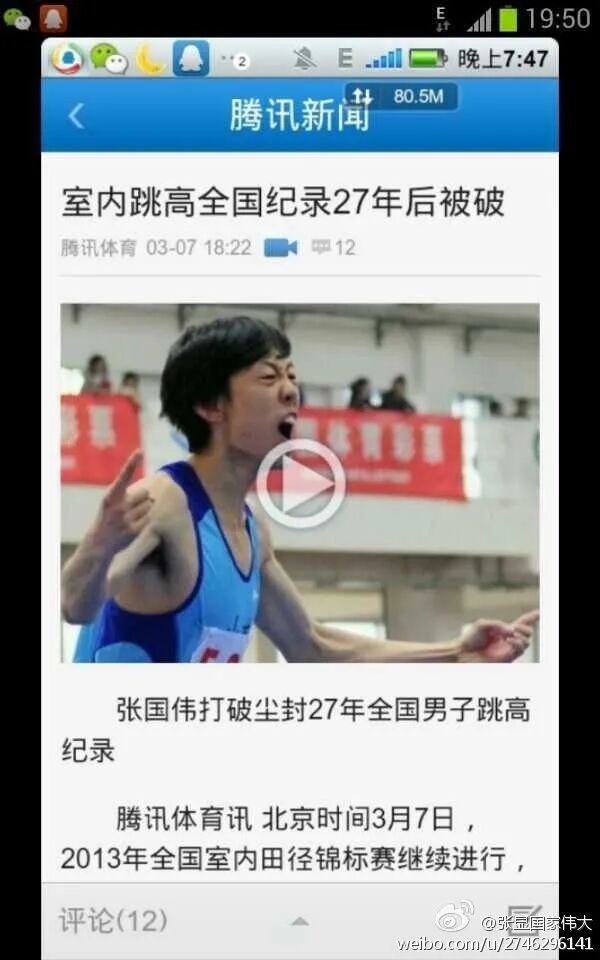 在2011年的室内田径比赛中,19岁的他第一次拿到了全国跳高冠军,兴奋得在现场跳起了舞。