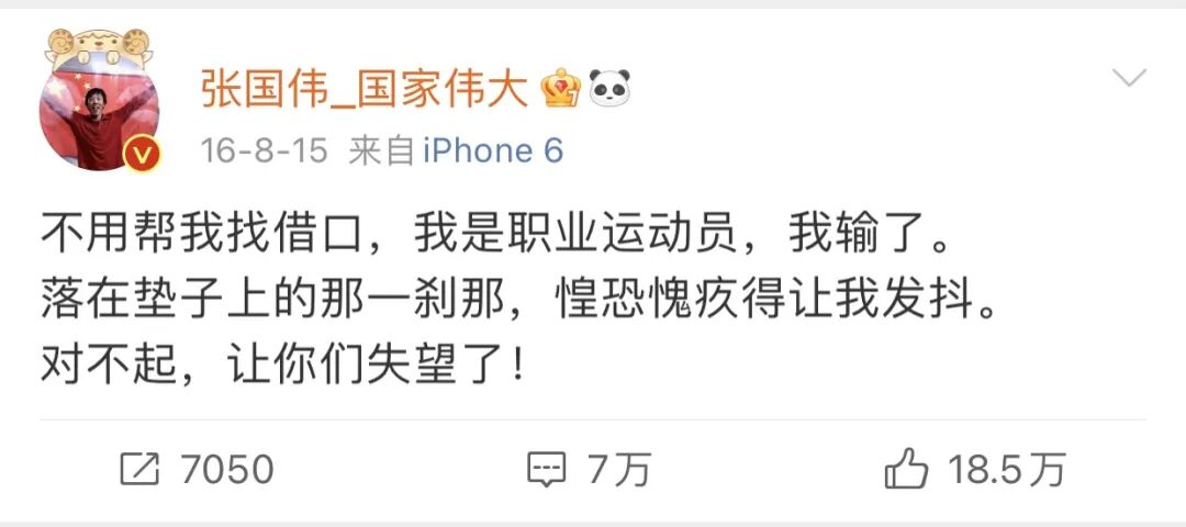 一个运动员,不管平时生活里是怎么样的,但在面对体育竞技的时候,永远都有一个敬畏之心。
