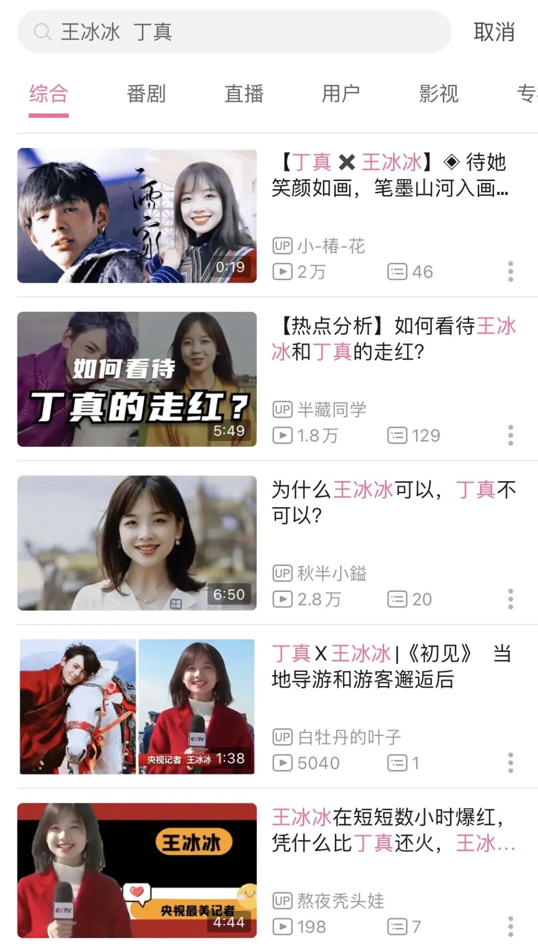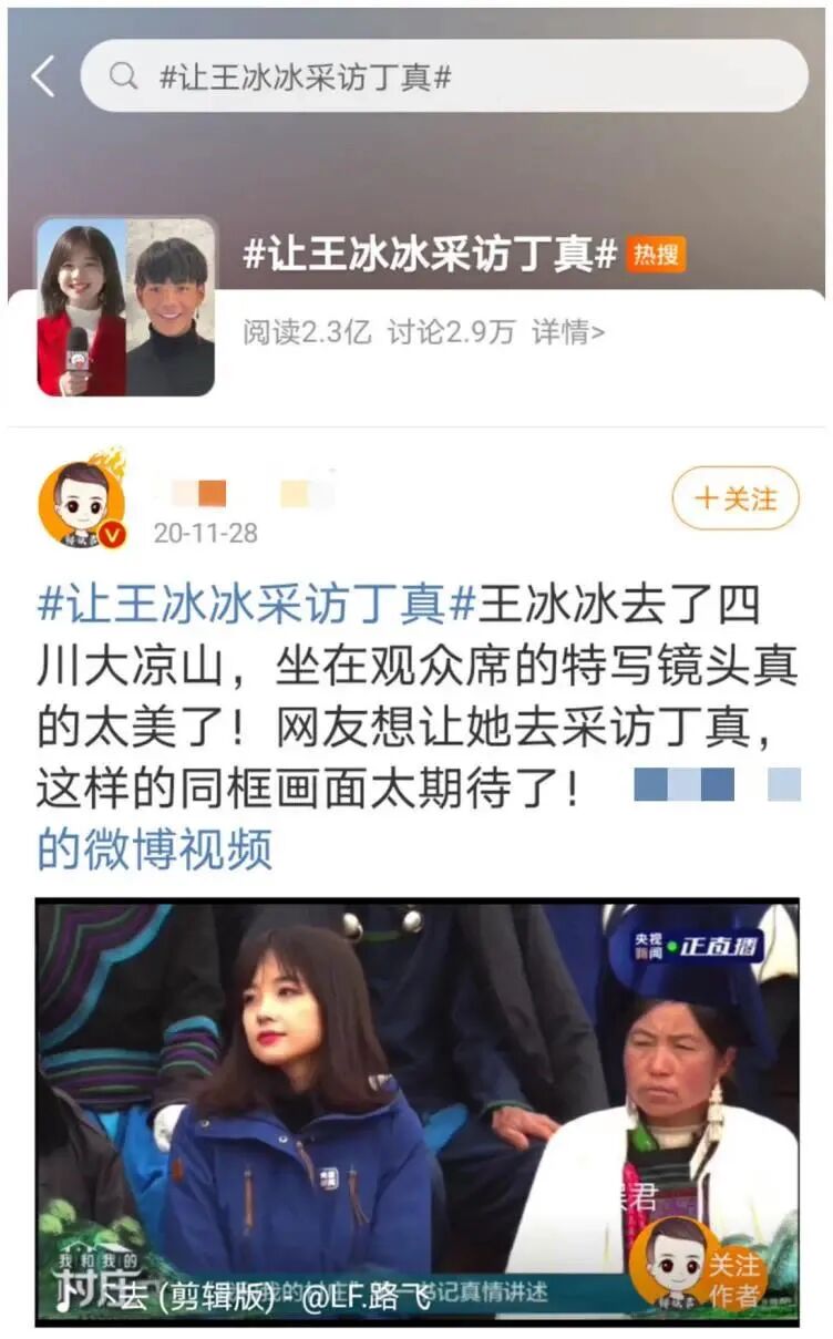 在这之后,你再搜王冰冰和丁真,页面就变成了这样。