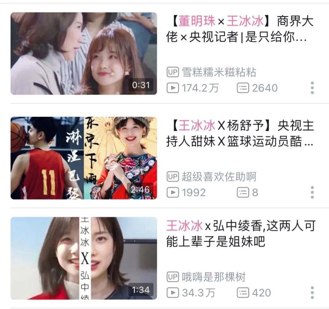 认真在b站翻一下,你还能看到王冰冰 x 董明珠、王冰冰 x 杨舒予、王冰冰 x 弘中绫香......