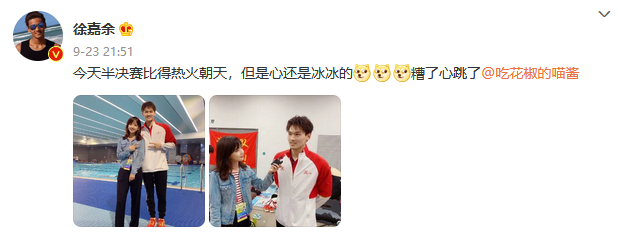 徐嘉余在他的微博晒出了双人合照,配文: