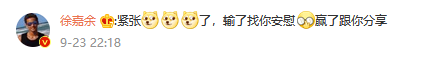 还去冰冰的微博留言:输了找你安慰,赢了找你分享。