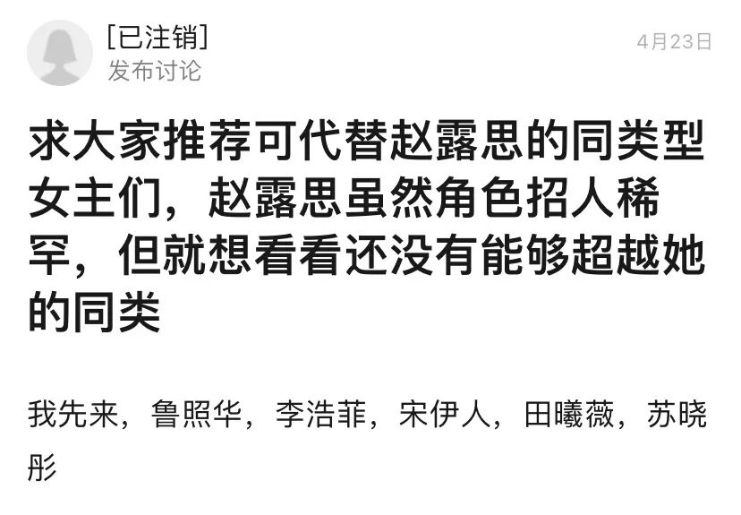 换句话来说,就是出现了大量的同类型演员,赵露思能演的,她们也可以!豆瓣上就管这个叫“演员代餐”。