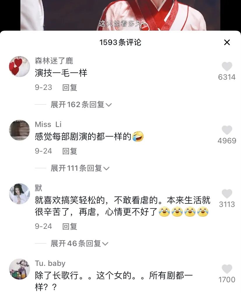 所以这次,赵露思被同质化的角色反噬,遭到质疑,我毫不意外。