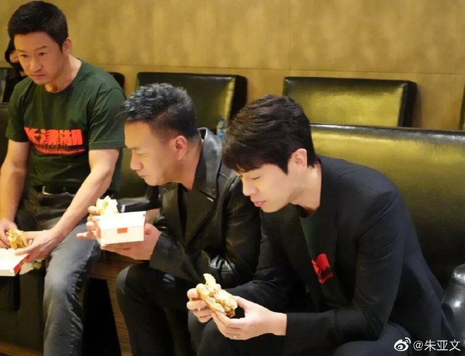 帅气吃汉堡的胡军和朱亚文VS被噎到的吴京