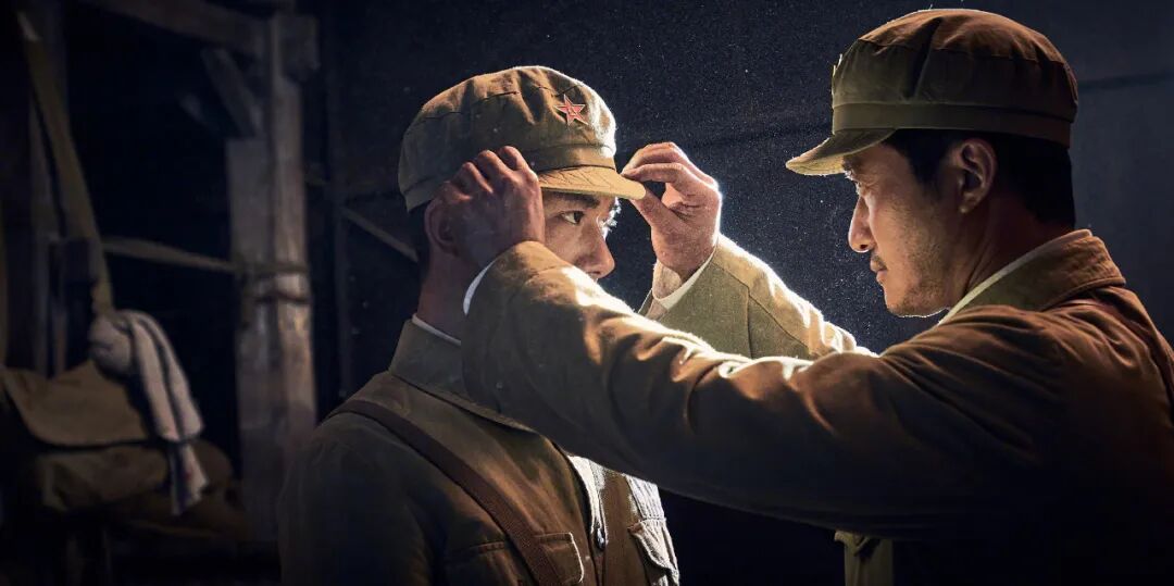 电影有一处特别让我感动的地方是,伍千里(吴京饰)为伍万里(易烊千玺饰)戴正军帽。