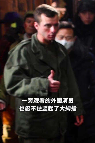 吴京在片场还会积极与外国演员、新人后辈沟通,教他们如何拿捏表演的细节。
