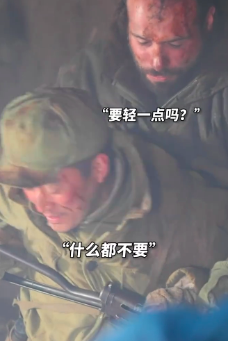 在一场动作戏中,一名外国演员需要用枪抵着吴京的肋骨,他问吴京需要轻点吗,吴京果断表示不需要将就。