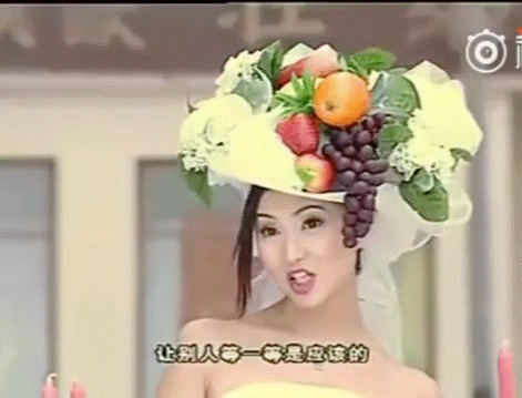在《粉红女郎》里穿成花瓶和大桌布顶着水果出场,美到就像仙子一样。