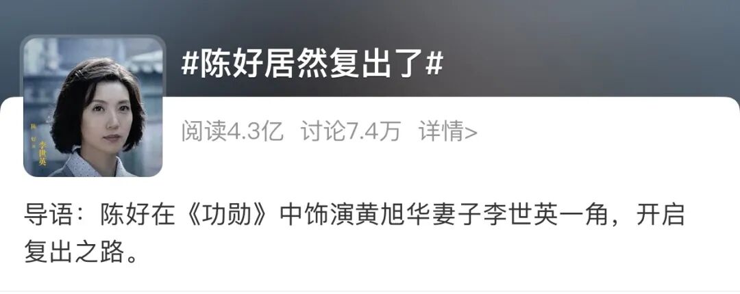 而陈好的这次复出却证明了,只要拥有清醒的头脑和认知,同时保持敢于打破常规的勇气和实力。