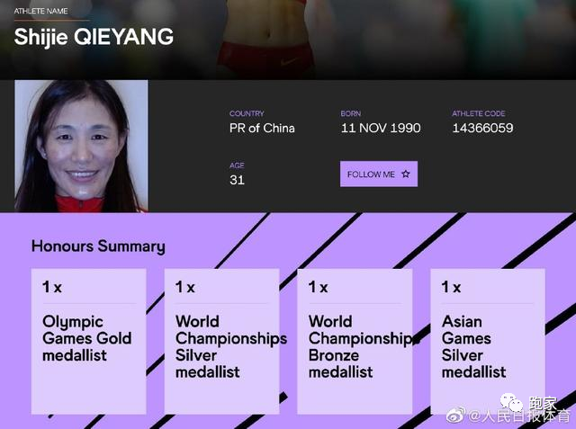 5月28日,中国竞走名将切阳什姐将参加2021/22赛季世界田联竞走巡回赛西班牙拉科鲁尼亚站的比赛。目前,在世界田联的官网上,切阳什姐的简介中已标注有“奥运会金牌获得者”,这说明世界田联已经官方认可了切阳什姐的2012年伦敦奥运会女子20公里竞走冠军。