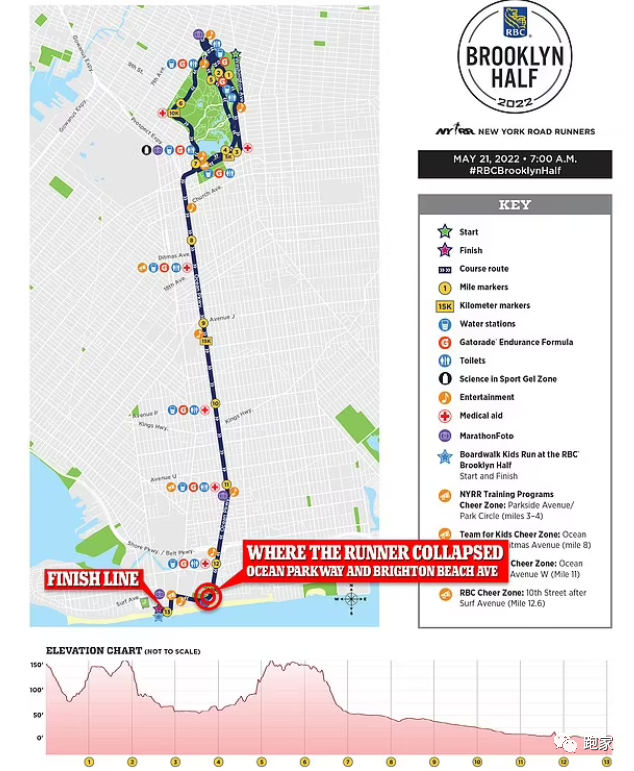 上一次布鲁克林半马发生参赛者猝死是在2014年,一位31岁的参赛者在冲过终点线后倒地死亡。
