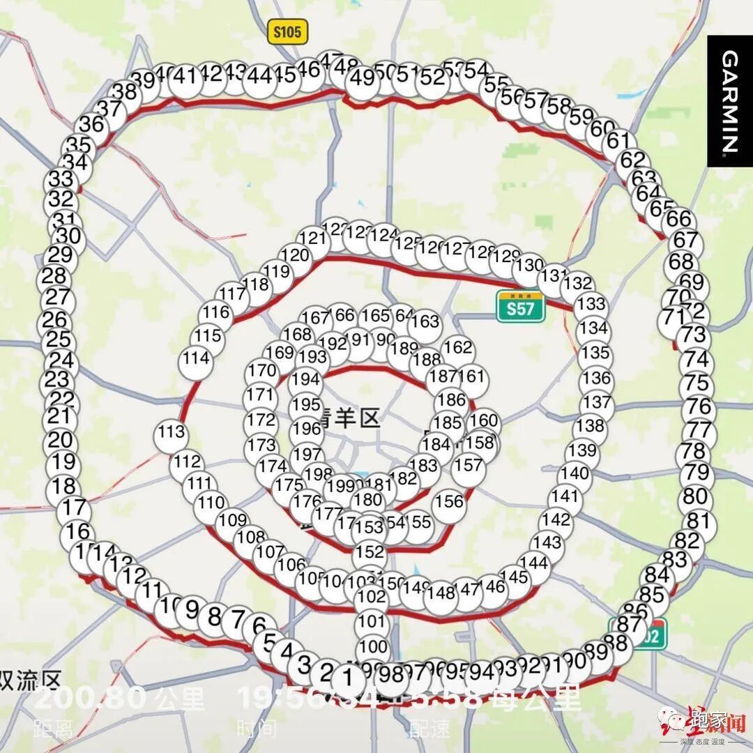 6月12日,成都一名网名兜兜的跑者,耗时20小时,跑了200公里,用脚步串联起了成都的一、二、三环和绕城绿道。