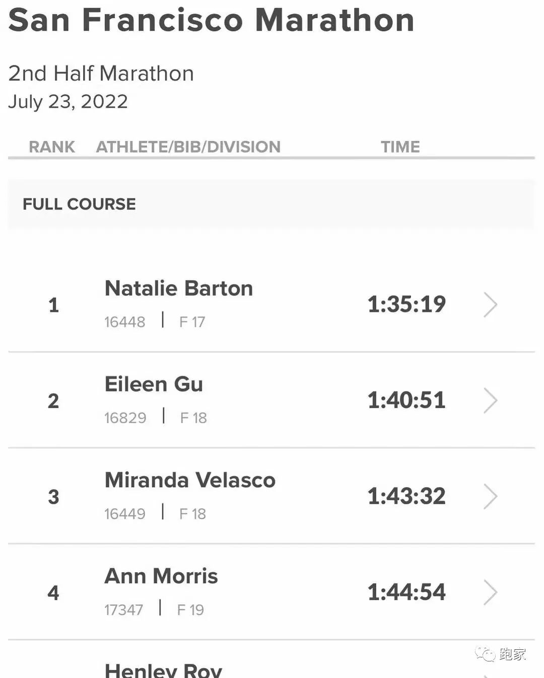 1小时40分51秒,谷爱凌在旧金山半马拿了个第二