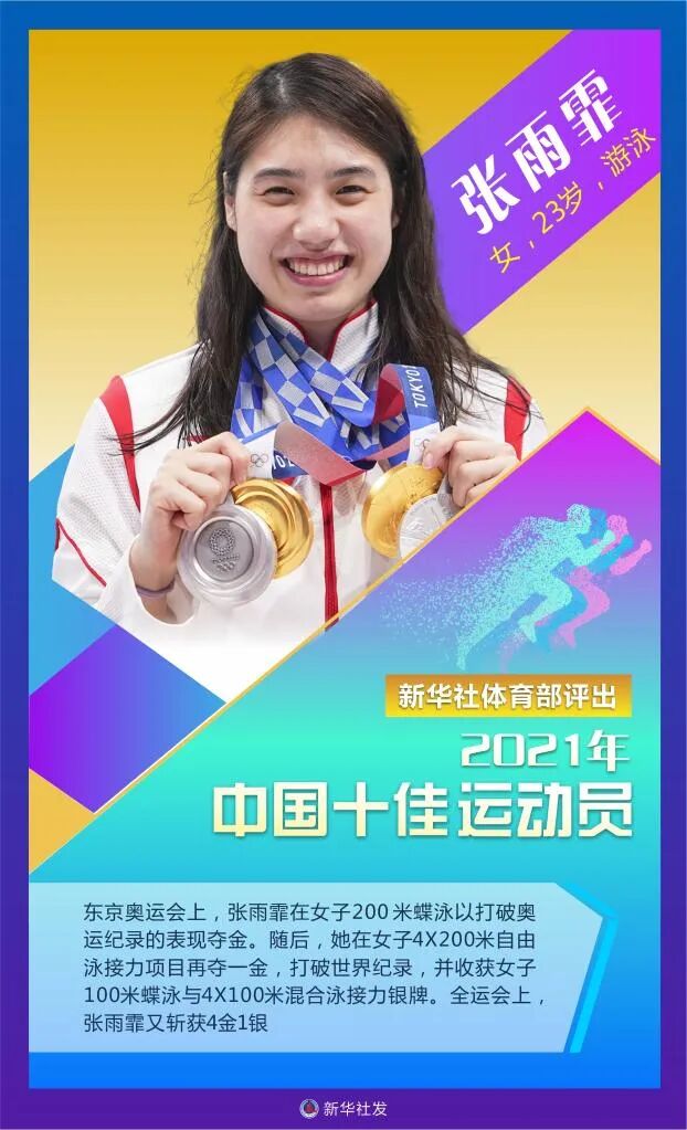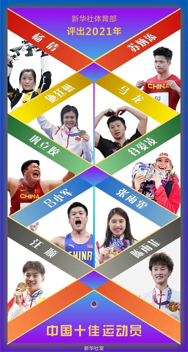 新华社体育部评出2021年中国十佳运动员如下: