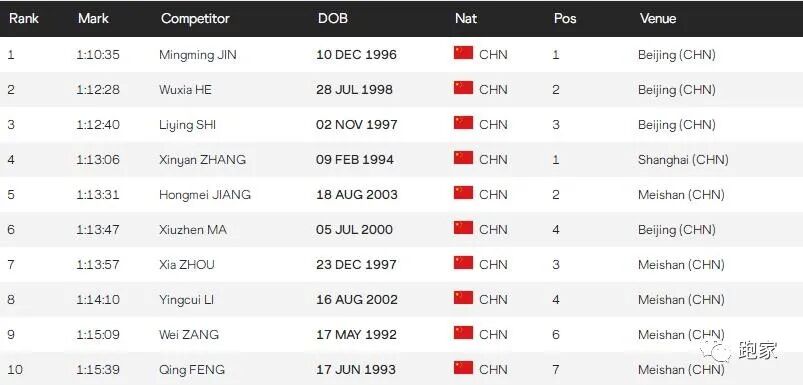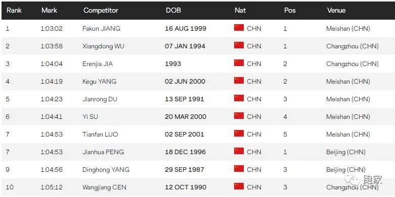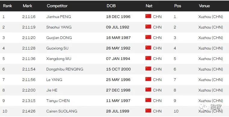 下面是刚刚过去的2021年全程马拉松国内男选手的最佳成绩前十位,比赛都是徐州马拉松。彭建华当然不让的是2021年最快的中国马拉松运动员。