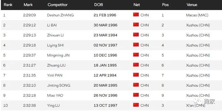 张德顺则是2021年跑得最快的中国女马拉松运动员,在澳门马拉松上,她的成绩是2小时29分9秒。
